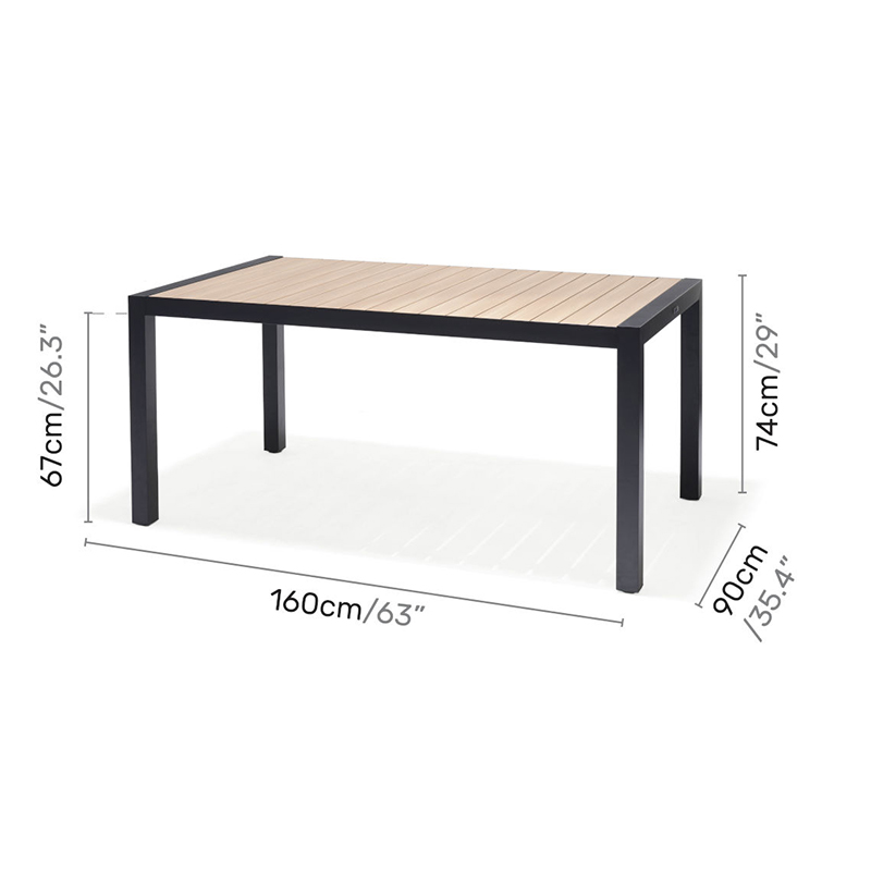 Toàn bộ khung bàn và ghế được làm từ hợp kim nhôm nguyên khối, phủ sơn tĩnh điện cao cấp chống gỉ sét, chịu nắng mưa cực tốt.